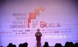 Pengunjung melintas saat menghadiri Indonesia Fintech and Festival di Indonesia Conference Exhibition (ICE) BSD, Tangerang, Senin (29/8). (FOTO : Republika/ Tahta Aidilla)