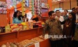 Ketua Dewan Komisioner OJK Muliaman D Hadad (kedua kanan,Compliance Director BTPN Anika Faisal (Kanan) berbicang saat mengunjungi stan BTPN usai membuka Indonesia Fintech and Festival di Indonesia Conference Exhibition (ICE) BSD, Tangerang, Senin (29/8). (FOTO : Republika/ Tahta Aidilla)