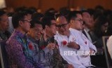 Ketua Dewan Komisioner OJK Muliaman D Hadad, Ketua Umum Kadin Indonesia Rosan Perkasa Roeslani (dari ketiga kiii) berbincang saat akan membuka Indonesia Fintech and Festival di Indonesia Conference Exhibition (ICE) BSD, Tangerang, Senin (29/8). (FOTO : Republika/ Tahta Aidilla)