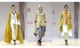 Koleksi busana dengan tema Revive dengan label Zelmira ditampilkan di Jakarta, Kamis (1/9). Koleksi busana ini hasil desain 4 siswi SMK NU Banat Kudus dan akan dibawa ke Center Stage-Asia's Premiere Fashion di Hongkong. (FOTO : Wihdan Hidayat/Republika)
