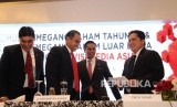 Suasana Jajaran Direksi PT Visi Media Asia Tbk saat Rapat Umum Pemegang Saham Tahunan (RUPST), Rapat Umum Pemegang Saham Luar Biasa (RUPSLB) dan Public Expose di Jakarta, Jumat (2/9). (FOTO : Republika/ Tahta Aidilla)