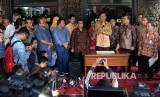 Duta Besar RI untuk Filipina Johny Lumintang (tengah) memberikan keterangan kepada wartawan seusai serah terima calon haji korban penipuan melalui jalur Filipina saat tiba di Bandara Internasional Soekarno-Hatta, Tangerang, Banten, Ahad (4/9). (FOTO : Republika/ Yasin Habibi)