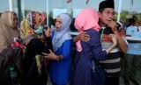 Sejumlah calon jamaah haji korban penipuan melalui jalur Filipina disambut keluarganya di Bandara Internasional Sultan Hasanuddin, Makassar, Minggu (4/9). (FOTO : Antara/Sahrul Manda Tikupadang)