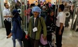 Sejumlah calon jamaah haji korban penipuan melalui jalur Filipina tiba di Bandara Internasional Sultan Hasanuddin, Makassar, Minggu (4/9). (FOTO : Antara/Sahrul Manda Tikupadang)