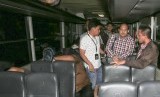 Bupati Banyuasin Yan Anton Ferdian (tengah) dijaga petugas kepolisian saat berada di dalam kendaraan di Polda Sumsel, Palembang, Sumatra Selatan, Minggu (4/9). (FOTO : Antara/Nova Wahyudi)