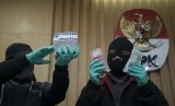 Penyidik KPK menunjukkan barang bukti berupa uang alam konferensi pers operasi tangkap tangan (OTT) Bupati Banyuasin, di Gedung KPK, Jakarta, Senin (5/9). (FOTO : Antara/Nova Wahyudi)