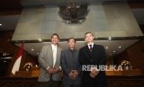 Hakim Agung terpilih Ibrahim ( kiri), bersama Panji Widagdo (tengah), dan Edi Riadi (kanan) berfoto bersama usai Rapat Paripurna di Kompleks Parlemen, Senayan, Jakarta, Selasa (6/9). (FOTO : Republika/Rakhmawaty La'lang)