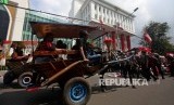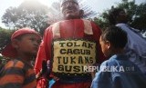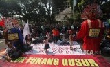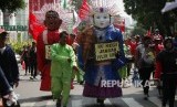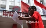 Massa yang tergabung dalam Front Wong Cilik Bicara melakukan unjuk rasa di depan kantor Dewan Pimpinan Pusat (DPP) Partai Demokrasi Indonesia Perjuangan (PDI-P) di Jalan Diponegoro, Jakarta Pusat, Rabu (7/9). (Republika/Rakhmawaty La'lang) (FOTO : Republika/Rakhmawaty La'lang)