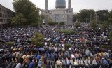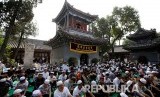 Jamaah shalat Ied di Beijing, China. (FOTO : Jason Lee/Reuters)
