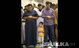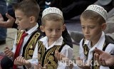 Tiga bocah Kosovo berdoa saat shalat Ied di ibukota Kosovo, Pristina, Senin (12/9) (FOTO : Visar Kryeziu/AP)