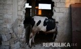 Seekor hewan kurban diamankan di dalam gedung di Damaskus, Suriah (FOTO : Bassam Khabieh/Reuters)
