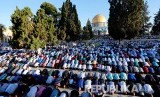 Shalat ied di Jerusalem, Palestina. (FOTO : Ammar Awad/Reuters)