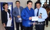 Presiden Direktur PT Mahaka Media Erick Thohir (kedua kiri) bersama Presiden Direktur PT Adaro Energy Tbk (Adaro) Garibaldi Thohir (kedua kanan) dan Kepala Kanwil DPJ Wajib Pajak Besar Mekar Satria Utama (kanan) menyerahkan laoran data aset dan hartanya da (FOTO : Republika/Agung Supriyanto)
