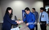 Presiden Direktur PT Adaro Energy Tbk (Adaro) Garibaldi Thohir (tengah) bersama Presiden Direktur PT Mahaka Media Erick Thohir (kanan) dan Pemegang saham Adaro Arini Subianto (kedua kanan) menyerahkan laporan data aset dan hartanya dalam program pengampuna (FOTO : Republika/Agung Supriyanto)