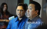 Presiden Direktur PT Mahaka Media Erick Thohir (kiri) bersama Presiden Direktur PT Adaro Energy Tbk (Adaro) Garibaldi Thohir memberi keterangan kepada wartawan seusai menyerahkan laporan data aset dan hartanya dalam program pengampunan pajak (tax amnesty) (FOTO : Republika/Agung Supriyanto)
