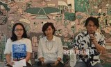 Kepala Departemen Kampanye dan Perluasan Jaringan Walhi Khalisah Khalid, bersama Direktur Eksekutif Nasional Walhi Nur Hidayati dan Manajer Penanganan Kasus dan Emergency Response Walhi Edo Rakhman (dari kiri ke kanan) memberikan pemaparan kepada awak medi (FOTO : Republika/ Raisan Al Farisi)