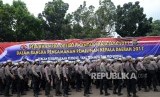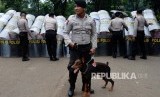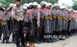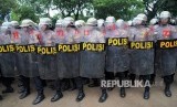 Anggota Polda Metro Jaya melakukan Pelatihan Pra Operasi Mantap Praja Jaya 2017 di Lapangan JCC, Senayan, Jakarta Pusat, Kamis (15/9). (FOTO : Republika/ Yasin Habibi)