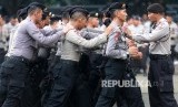 Anggota Polda Metro Jaya melakukan Pelatihan Pra Operasi Mantap Praja Jaya 2017 di Lapangan JCC, Senayan, Jakarta Pusat, Kamis (15/9) (FOTO : Republika/ Yasin Habibi)