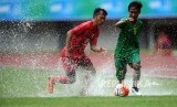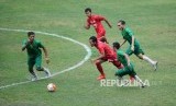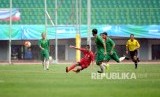 Pemain Kalsel berebut bola dengan Pemain Sulsel dalam pertandingan Grup B di Stadion Patriot Chandrabaga, Bekasi,Jawa Barat, Ahad (18/9).(Republika/ Tahta Aidilla) (FOTO : Republika/ Tahta Aidilla)