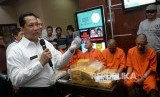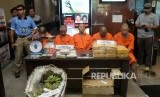 REPUBLIKA.CO.ID, BNN kembali menggelar hasil tangkapannya. Sebanyak lima tersangka diamankan dari dua jaringan berbeda. Sabu seberat 10,4 kilogram diamankan di Pademangan dari jaringan Entikong-Singkawang-Pontianak-Jakarta. Serta sabu seberat 16 kilogram diamankan dari jaringan Medan. Semua tersangka terancam dengan