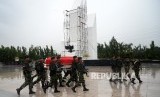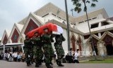 Prajuri TNI membawa peti jenazah almarhum mantan Menteri Agama Maftuh Basyuni seusai di sholati di Masjid At-Tin, Jakarta, Rabu (21/9) (FOTO : Republika/ Yasin Habibi)