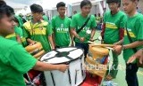 Suportet Jatim menyanyikan yel-yel ketika pertandingan final nomor Recurve individu putra/putri PON XIX di Lapangan Panahan Kompleks Si Jalak Harupat, Kabupaten Bandung, Jabar, Rabu (21/9) (FOTO : Republika/Prayogi)