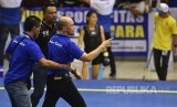 Ketua Pengprov Wushu Jawa Barat Edwin Sanjaya (kanan) melakukan protes terhadap kinerja wasit usai final nomor Sanda PON XIX (FOTO : Antara/Wahyu Putro)