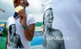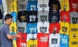 Pembeli memilih baju PON XIX yang dijual di Kompleks Stadion Si Jalak Harupat, Kabupaten bandung (FOTO : Republika/Prayogi)