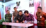 Ketua Dewan Komisioner OJK Muliaman D. Hadad dan Gubernur Sulawesi Tengah Longki Djanggola menandatangani prasasti peresmian Kantor OJK Sulawesi Tengah di Palu, Sulteng, Kamis (22/9). (FOTO : Republika/ Yogi Ardhi)