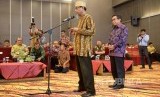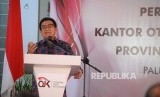 Ketua Dewan Komisioner OJK Muliaman D. Hadad Tim Percepatan Akses Keuangan Daerah (TPAKD), Satuan Tugas Waspada Investasi Daerah, Pengurus ISEI; dan Masyarakat Ekonomi Syariah Provinsi Sulawesi Tengah di Palu, Sulteng, Kamis (22/9). (FOTO : Republika/ Yogi Ardhi)