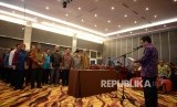 Ketua OJK Muliaman Hadad menyaksikan pelantikan pengurus Masyarakat Ekonomi Syariah Sulteng, Kamis (22/9). (FOTO : Republika/Yogi Ardhi)
