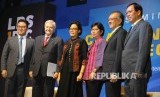 Menteri Keuangan Sri Mulyani (ketiga kiri), Kepala Eksekutif LPS Fauzi Ichsan, Presiden Bank Sentral Eropa periode 2003-2011 Jean-Claude Trichet, Komisioner LPS Destry Damayanti, Ketua Dewan Komisioner Lembaga Penjamin Simpanan (LPS) Halim Alamsyah, (FOTO : Republika/Agung Supriyanto)