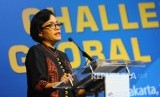 Menteri Keuangan Sri Mulyani menyampaikan paparannya dalam seminar tahunan LPS di Jakarta, Kamis (22/9). (FOTO : Republika/Agung Supriyanto)