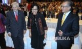 Menteri Keuangan Sri Mulyani (tengah), Presiden Bank Sentral Eropa periode 2003-2011 Jean-Claude Trichet serta Ketua Dewan Komisioner Lembaga Penjamin Simpanan (LPS) Halim Alamsyah (dari kiri) menghadiri pembukaan seminar tahunan LPS di Jakarta, Kamis (22/ (FOTO : Republika/Agung Supriyanto)