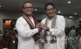 Bakal Calon Gubernur DKI Anies Baswedan dan Bakal Cawagub Sandiaga Uno saat pendaftaran di KPUD DKI Jakarta, Jumat (23/9) malam. (FOTO : Republika/Raisan Al Farisi)