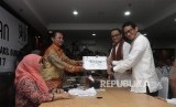 Bakal Calon Gubernur DKI Anies Baswedan (kedua kanan) dan Bakal Cawagub Sandiaga Uno (kanan) menyerahkan dokumen pendaftaran kepada pimpinan KPUD DKI, Sumarno saat pendaftaran di KPUD DKI Jakarta, Jumat (23/9) malam. (FOTO : Republika/Raisan Al Farisi)