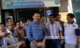 Pasangan bakal calon gubernur dan calon wakil gubernur DKI Jakarta Basuki Tjahaja Purnama seusai menjalani tes bebas narkoba di BNN, Jakarta, Ahad (25/9). (FOTO : Republika/ Yasin Habibi)