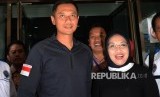 Pasangan bakal calon gubernur dan calon wakil gubernur DKI Jakarta Agus Harimurti Yudhoyono dan Sylviana Murni seusai menjalani tes bebas narkoba di BNN, Jakarta, Ahad (25/9). (FOTO : Republika/ Yasin Habibi)