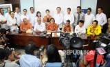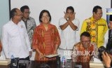 Ketua Kadin Indonesia Rosan Perkasa Roeslani (Keempat kiri) menyampaikan surat pernyataan harta (SPH) didampingi Menteri Keuangan Sri Mulyani (tengah) serta Direktur Jendral Pajak Ken Dwijugiasteadi (ketiga kanan) (FOTO : Republika/Agung Supriyanto)