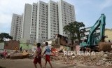 Alat berat sudah berada di lokasi penggusuran di kawasan Kampung Melayu Kecil, Bukit Duri, Jakarta, Selasa (27/9). (FOTO : Republika/ Yasin Habibi)