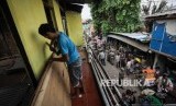 Aktivitas warga Bukit Duri jelang penggusuran permukiman yang terkena proyek normalisasi Sungai Ciliwung, Bukit Duri, Jakarta, Rabu (28/9). (FOTO : Republika/Raisan Al Farisi)