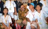 Wakil Gubernur DKI Jakarta Djarot Saiful Hidayat (tengah) berfoto bersama para dokter kecil peserta lomba dokter kecil award 2016 di Balai Kota DKI Jakarta, Jakarta Pusat, Ahad (2/9). (FOTO : Republika/Rakhmawaty La'lang)