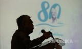 Guru Besar Emeritus bidang Ilmu Gizi, IPB Bogor Prof. Soekirman menyampaikan sambutan pada peluncuran bukunya Gizi Pembangunan di Jakarta, Sabu (1/10). (FOTO : Republika/Yogi Ardhi)