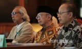 mantan Meperindag Rahadi Ramelan, Tokoh NU Salahuddin Wahid dan mantan menteri Keunagan JB Sumarlin mengikuti acara peluncuran buku 80 Tahun Prof Soekirman (FOTO : Republika/Yogi Ardhi)