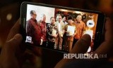 Pengunjung memotret suasana peluncuran buku Gizi Pembanguna di Jakarta, Sabtu (1/10). (FOTO : Republika/Yogi Ardhi)