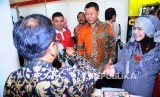 Ketua Gerakan Beli Indonesia Heppy Trenggono mengunjungi salah sat stand dalam pameran Gerakan Beli Indonesia di Gedung Smesco, Jakarta, Senin (3/10). (FOTO : Republika/Agung Supriyanto)