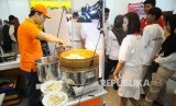 Pengunjung melihat proses pembuatan siomay dalam pameran Gerakan Beli Indonesia di Gedung Smesco, Jakarta, Senin (3/10). (FOTO : Republika/Agung Supriyanto)