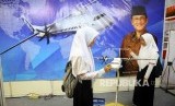 Pengunjung melihat replika pesawat karya BJ Habibie dalam pameran Gerakan Beli Indonesia di Gedung Smesco, Jakarta, Senin (3/10). (FOTO : Republika/Agung Supriyanto)