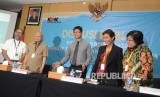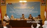 Dua menteri, mantan menteri, Wakil Ketua KPK, dan mantan wakil Ketua KPK menjadi pembicara dalam diskusi bertema reklamasi di Gedung KPK Jakarta, Selasa (4/10). (FOTO : Republika/ Raisan Al Farisi)