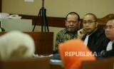 Wakil Ketua Komisi Pemberantasan Korusi (KPK) Laode M Syarif (kanan) menghadiri sidang terdakwa kasus suap dana hibah sekaligus Mantan Ketua Kamar Dagang dan Industri (Kadin) Jawa Timur La Nyalla Mahmud Mattalitti dengan agenda mendengarkan keterangan saks (FOTO : Republika/ Raisan Al Farisi)